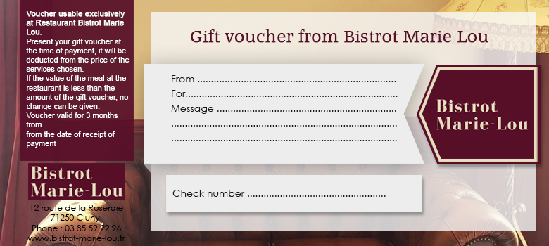 More information about the gift vouchers of the Bistrot Marie-Lou in Cluny :